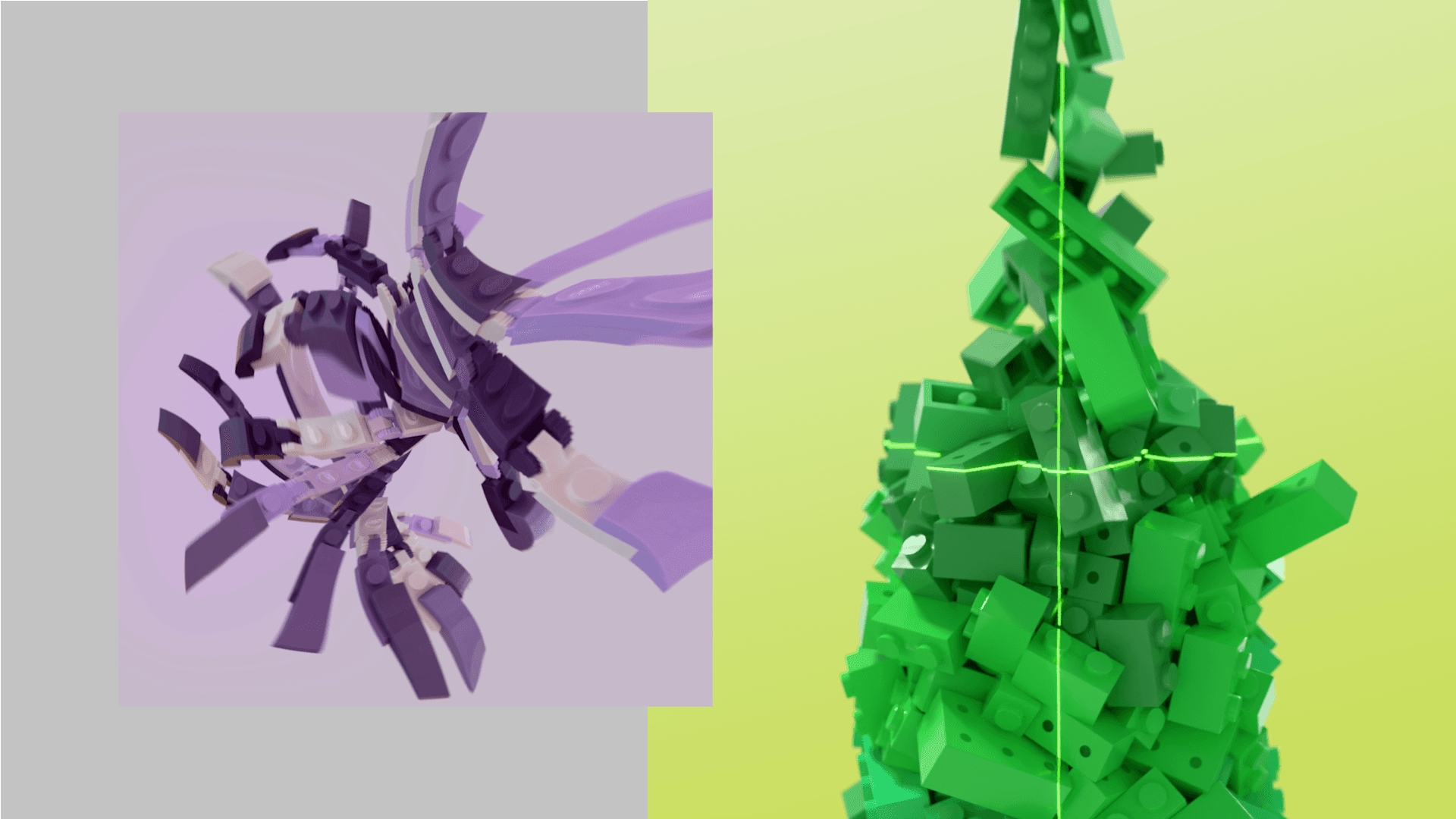 레고를 ‘방향을 잃은 시스템’으로 해석한 실험적인 모션그래픽 프로젝트입니다. 미세한 휘어짐, 탄성, 충돌, 비닐의 감싸짐 등을 시뮬레이션을 통해 뒤집거나 눕히거나 기울여도 여전히 레고인 구조의 본질을 시각화 하였습니다.